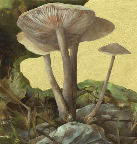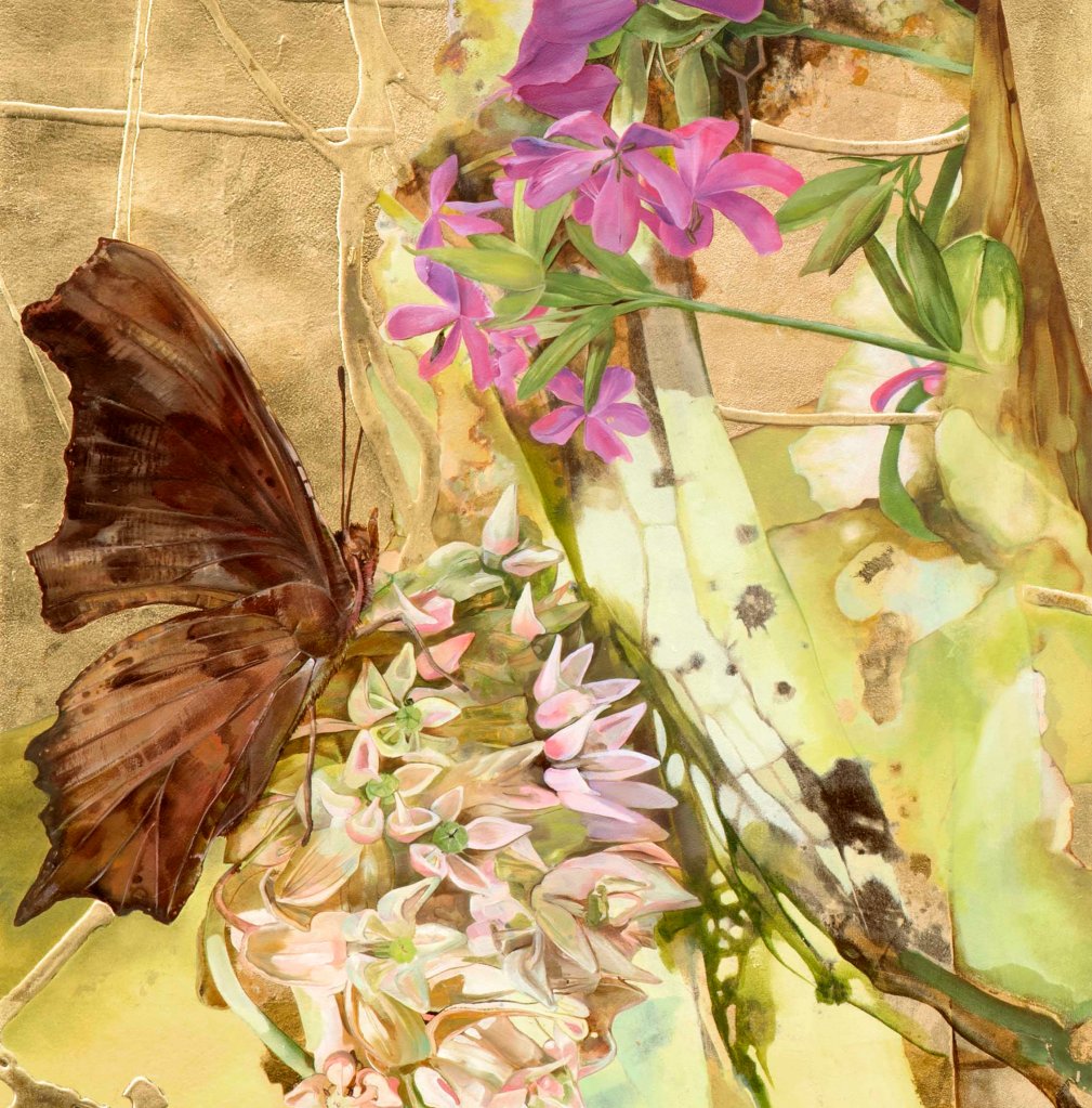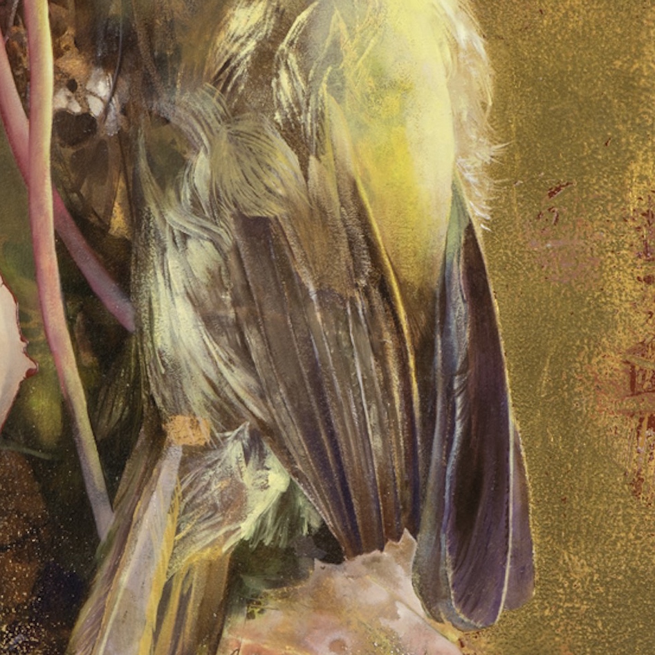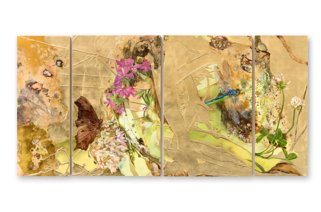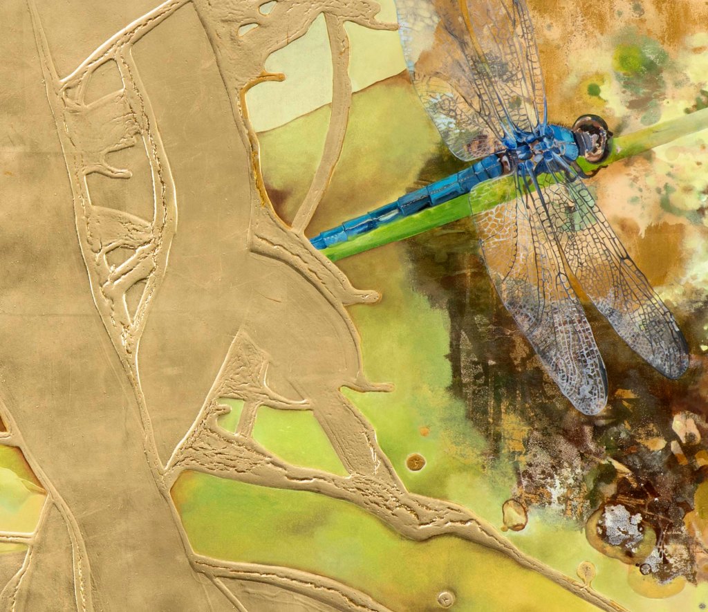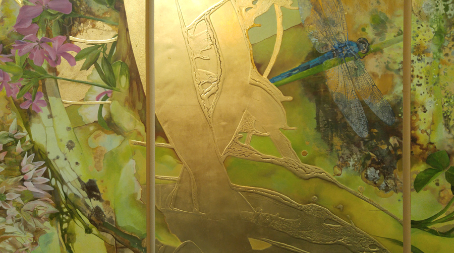 “Flutter & Dart” oil/acrylic/metal leaf on birch panel