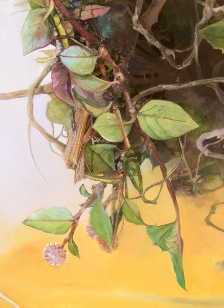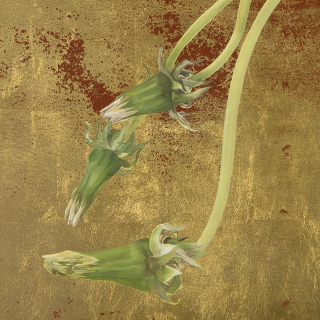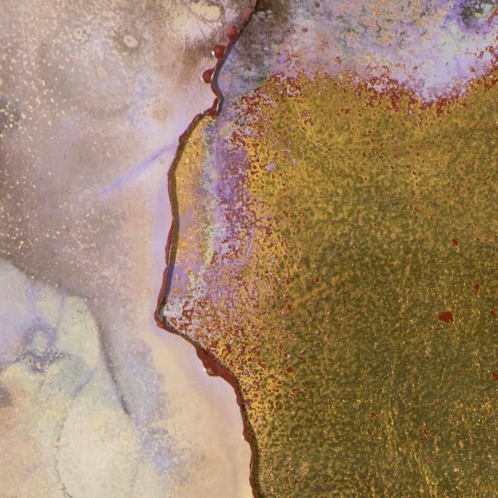Depending on the lighting conditions, the metal leaf can look cooler or warmer… under natural light the leaf will begin to glow warmer at the end of the day, as the painted areas begin to silhouette.